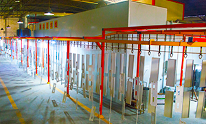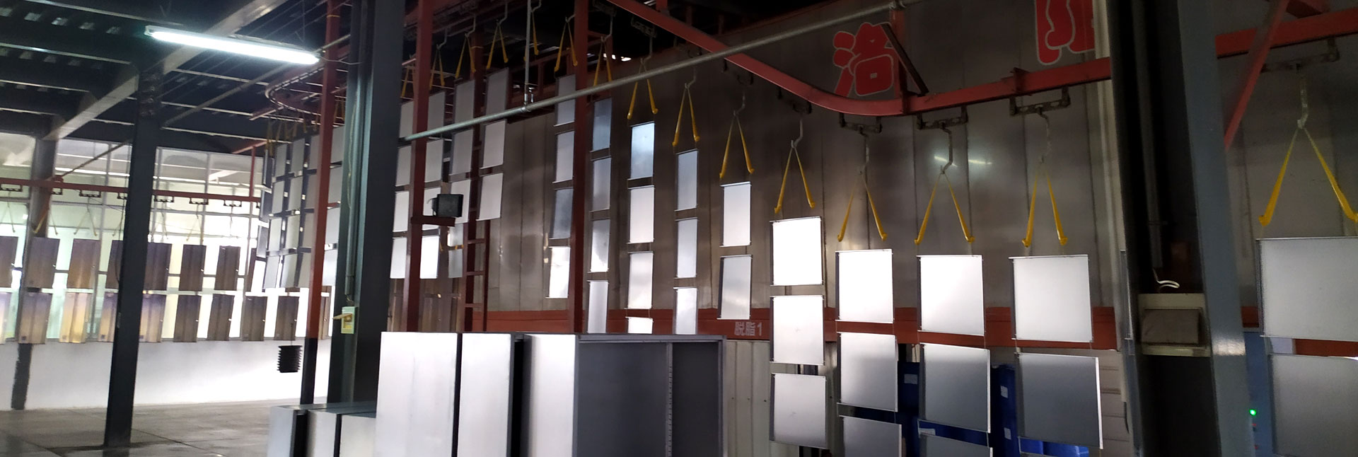 振越智造擁有先進的瑞士金馬靜電噴涂生產(chǎn)線,整個噴涂線全長400多米, 12把德國進口自動噴槍和2把手動噴槍