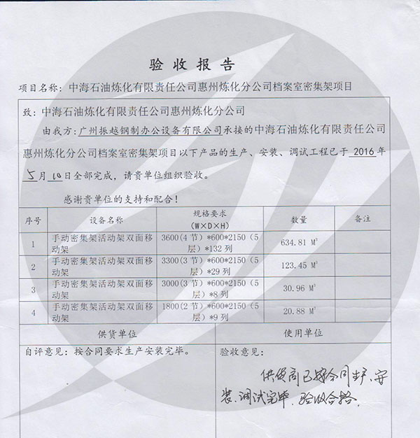 客戶簡介:中海石油煉化有限責(zé)任公司惠州煉化分公司成立2005年11月30日,公司主營:石油煉制、石油煉制及石油化工技術(shù)研發(fā)、轉(zhuǎn)讓;石化產(chǎn)品的生產(chǎn)及銷售;倉儲服務(wù)。(憑許可證經(jīng)營)(依法須經(jīng)批準(zhǔn)的項目,經(jīng)相關(guān)部門批準(zhǔn)后方可開展經(jīng)營活動)〓(因資料多現(xiàn)需采購,移動檔案柜,帶燈檔案密集架一批,想詢找珠三角地區(qū)密集架生產(chǎn)廠家)